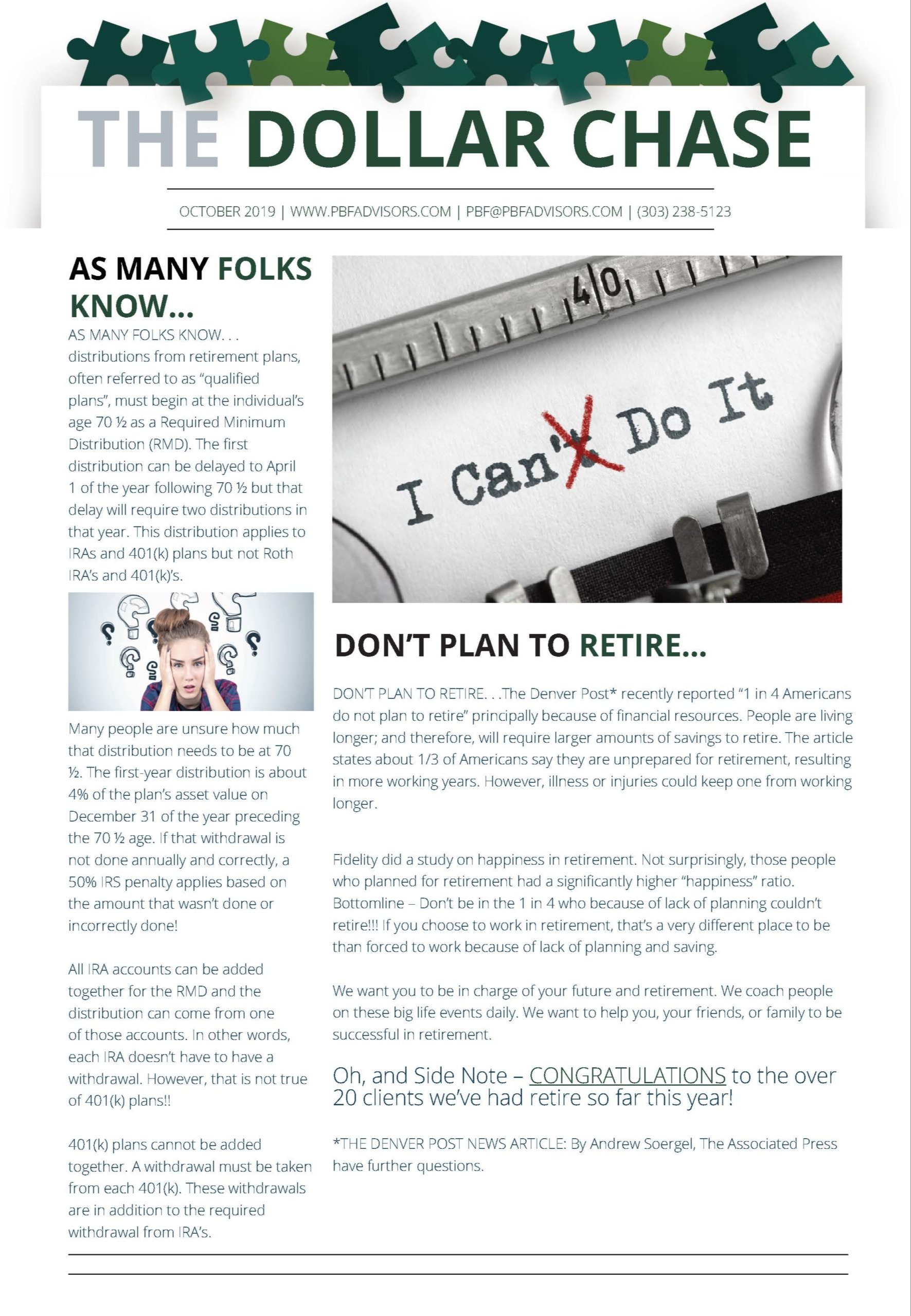 The Dollar Chase Newsletter – October 2019